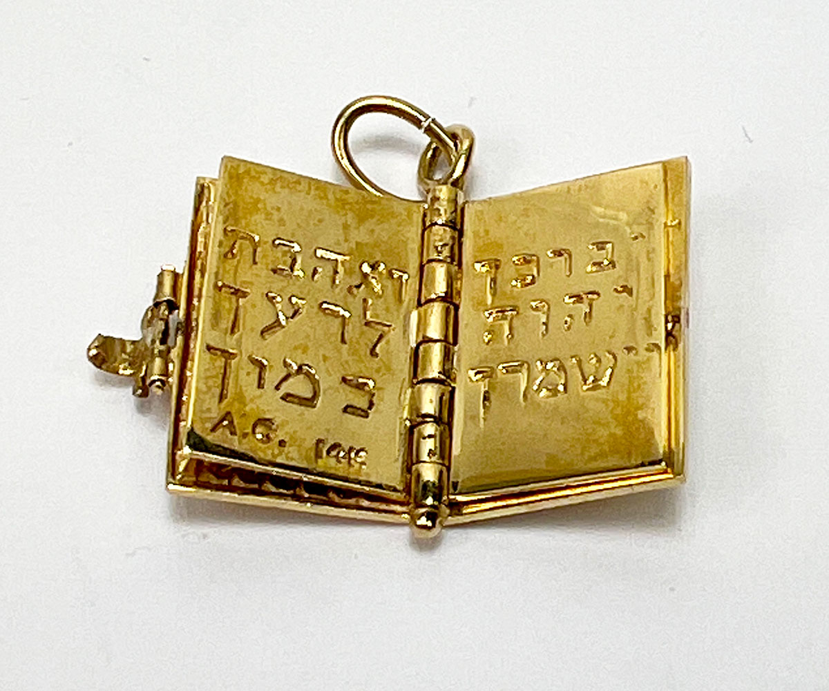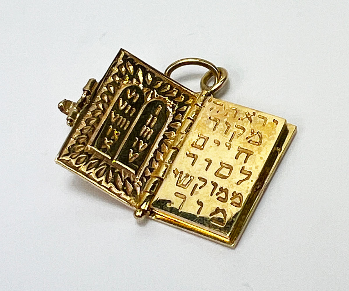 Description: 14K book charm with engraved Hebrew commandments on 6 pages.